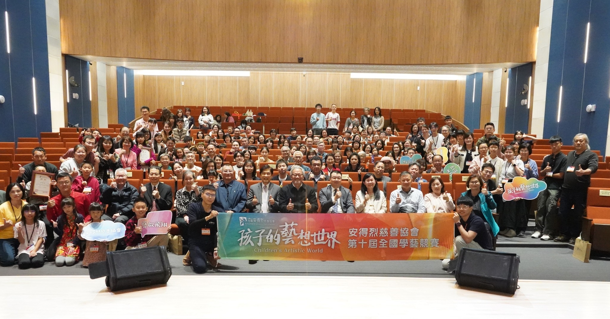 安得烈慈善協會12/5在中正紀念堂盛大舉行第十屆全國學藝競賽頒獎典禮及「孩子的藝想世界」公益畫展開幕式,吸引了社會各界的熱烈關注與參與。多位重量級嘉賓蒞臨現場,與眾多師生、家長及藝術愛好者一同見證這場充滿創意與感動的藝術盛宴。活動不僅是一場競賽的圓滿結尾,更是一個藝術夢想的全新起點。 從繪畫、作文到書法,孩子們的創作呈現出強烈的生命力與無限的創新,讓所有人為之驚豔。 這些作品展現了青少年對世界的獨特視角以及對藝術的熱愛,不僅是他們才華的體現,更為社會注入了溫暖與希望。 同時開幕的「孩子的藝想世界」公益畫展,匯集了優秀的參賽作品,以豐富的形式和多元的內容,展現孩子們在藝術創作中的無限可能性。畫展的作品不僅傳達了孩子們對世界的觀察與思考,更蘊含了他們對生活的純真情感。